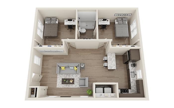 High-Speed Internet, Water, Trash & Sewer Services, Modern Furniture Package, Washer & Dryer, 55″ TV in Living Room
